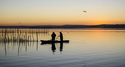 Descubre la Albufera de Valencia de una manera única: relájate y disfruta de un paseo en barca, explorando la serena belleza de sus aguas tranquilas y sus estrechos canales con su flora y fauna.
